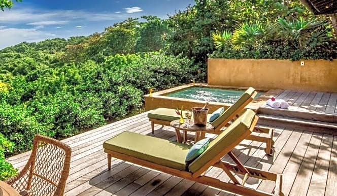 This spacious, modern suite opens to a furnished patio and features wooden décor, a plunge pool, coffee maker, mini-bar and a 53-inch, flat-screen TV. Guests also enjoy a comfortable seating area, free Wi-Fi, and air conditioning. The bathroom comes with shower, soaking bath tub and bathrobes. In-room massage service is available.